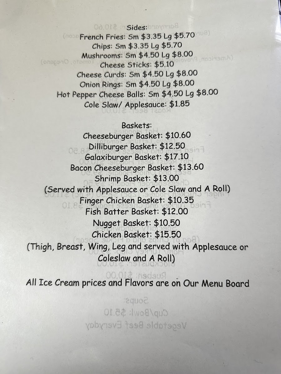“ Nice family run diner. Delicious made to order food. Recommend the cheeseburgers. Delicious soft serve ice cream. Order at the counter, and they bring the food to your table. Very friendly and helpful employees. Reasonable prices. ”